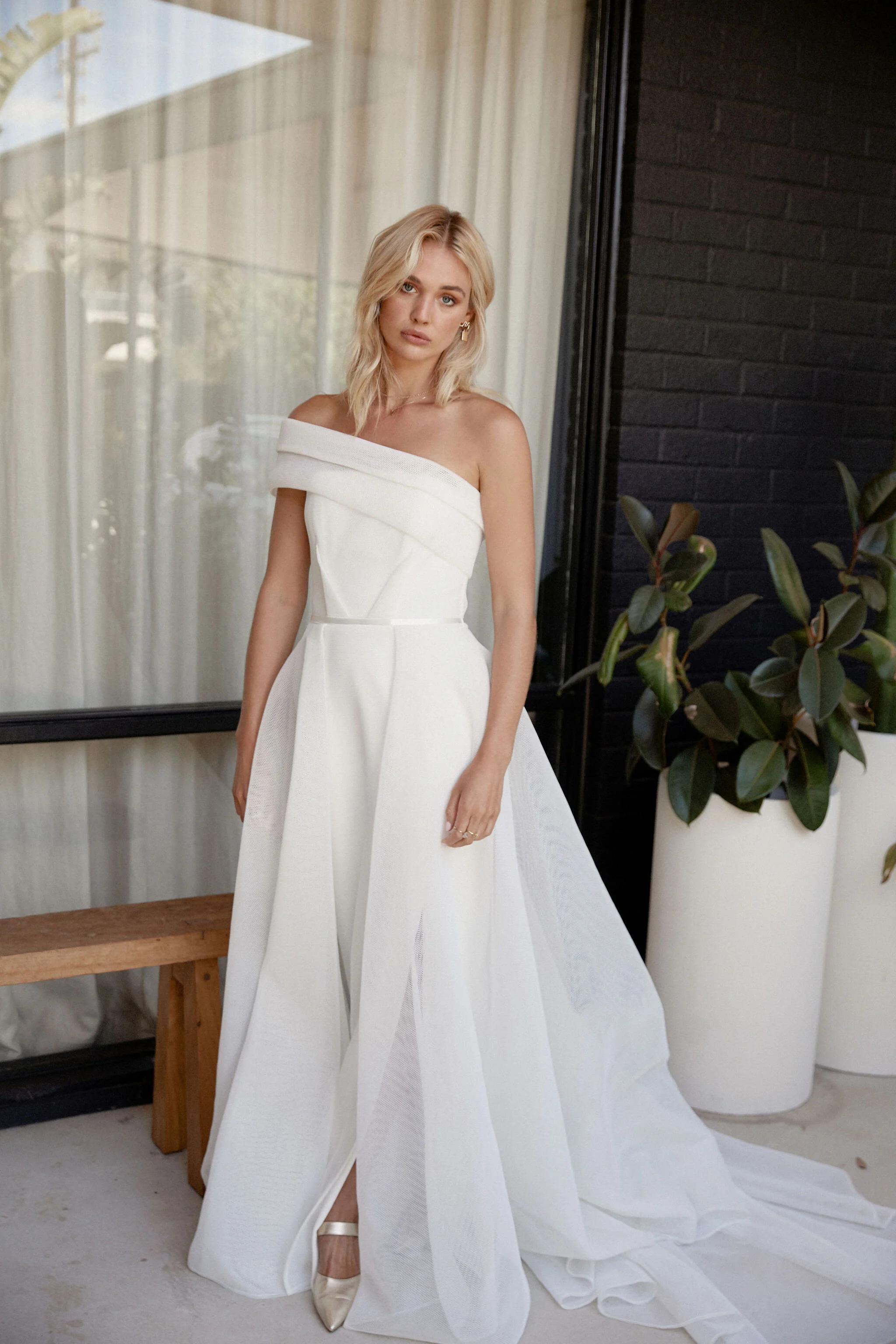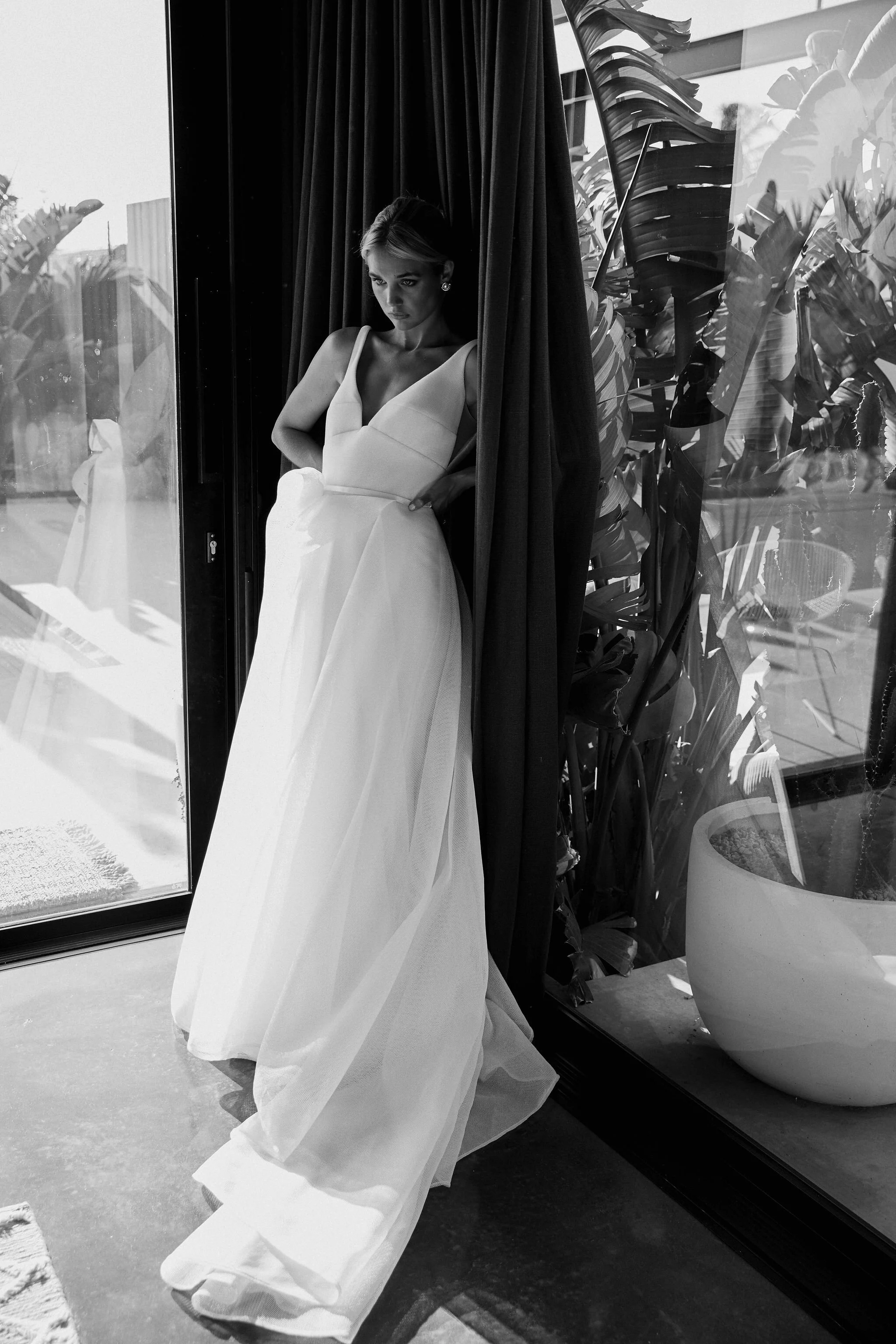 Inspired by the juxtaposition between classic shapes crafted in contemporary fabrics and the coolness of an architecturally built and styled space, Lumière is for the bride who knows that her uniqueness is her magic.