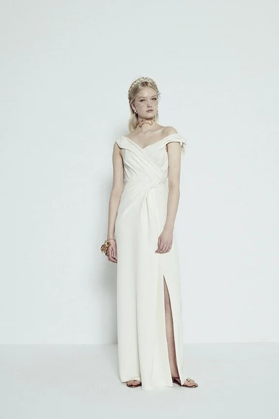 Evoking a fantasy ancient world, Dior’s milliner, Stephen Jones, dreamt up modern crowns and precious offerings. From small hat veils (an embellishment dear to Christian Dior), based on 1940s archive models from around the world to golden head ornaments punctuated with flowers or snakes as well as delicate headbands recalling antique ornaments. It was a reflection of Maria Grazia Chiuri’s desire to celebrate the magnificent beauty of female deities from mythology.