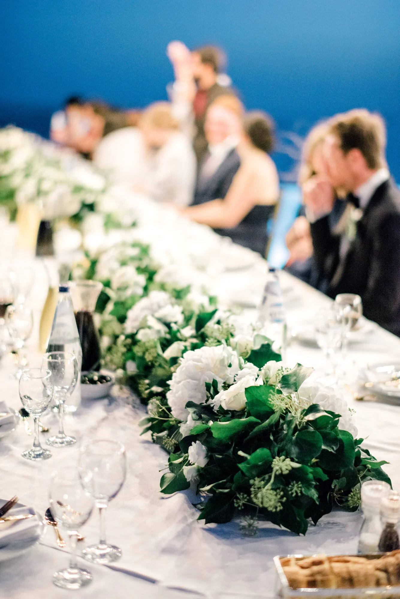 FLORAL WONDER "While I’d like to take credit for our stunning flowers, all I did was share two to three examples of white bouquets, a floral wedding arch, and centrepieces, and give our wedding planner a budget." Julia partnered with Betty Flowers Santorini designed floral masterpieces. Flowers from the ceremony arch were placed the centrepieces for the head table.